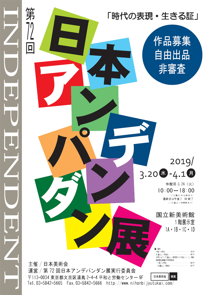 前回は757人の出品者と2万人を越える鑑賞者が、様々な出会い、刺激を求 めて集いました。そんなアンデパンダン展に、平和と自由と創造の喜びを求め て、あなたも参加してみませんか。