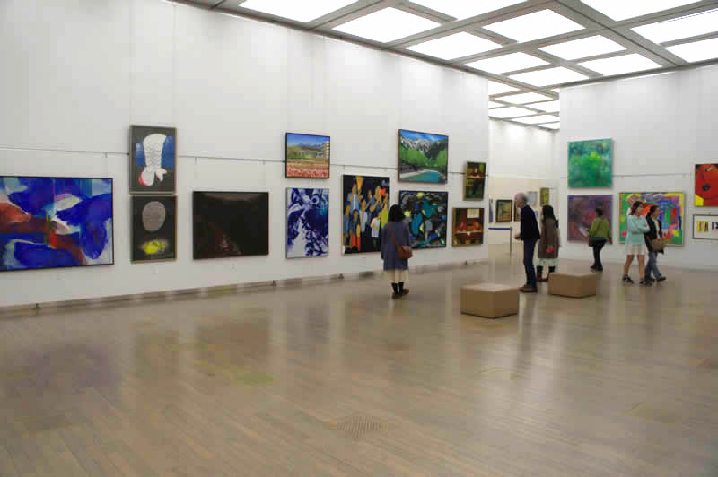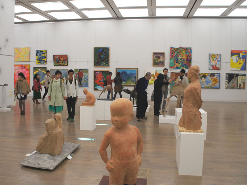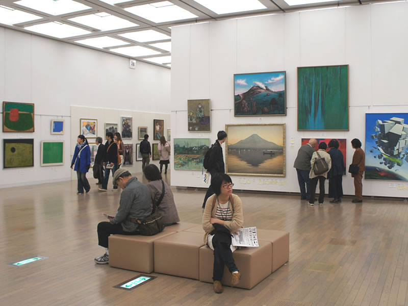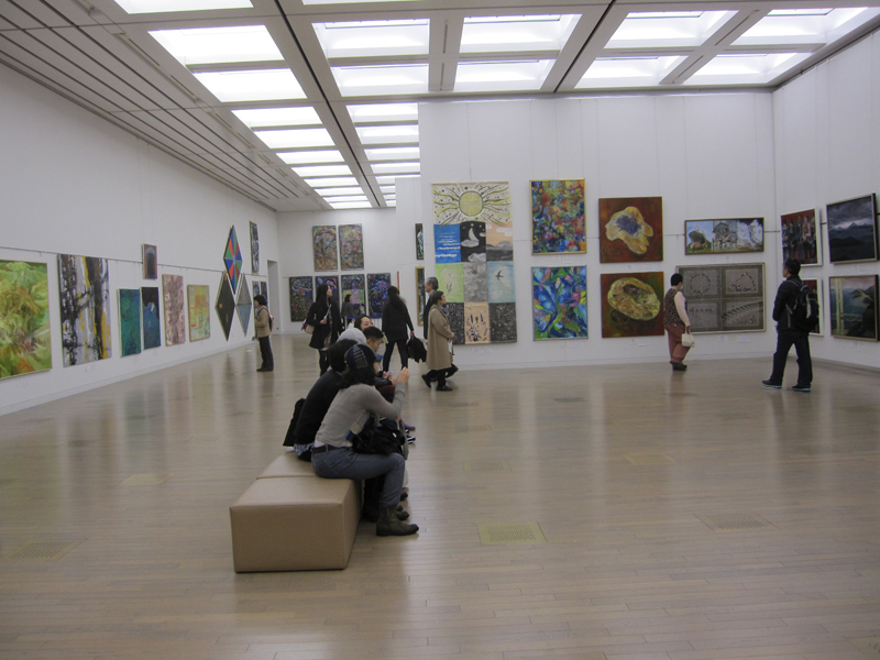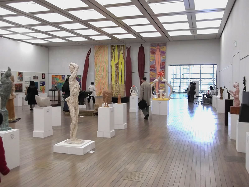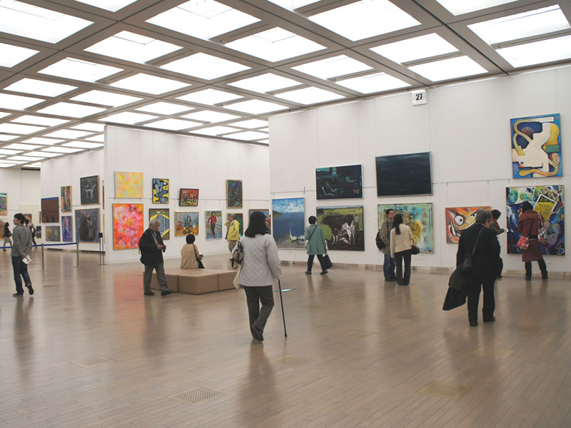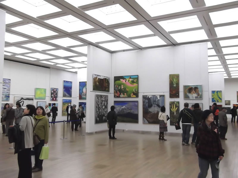 広く明るい国立新美術館は多様な作品群のステージです。毎年、1万数千人の鑑賞者が集います
