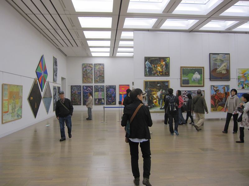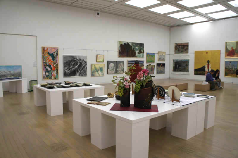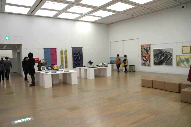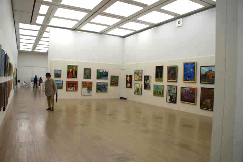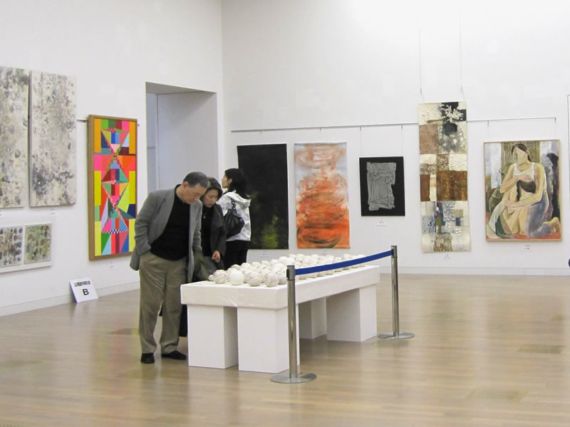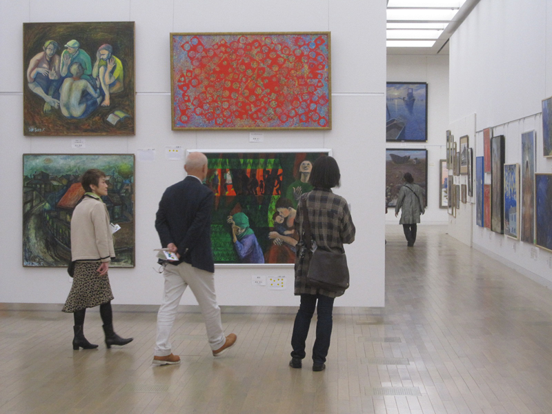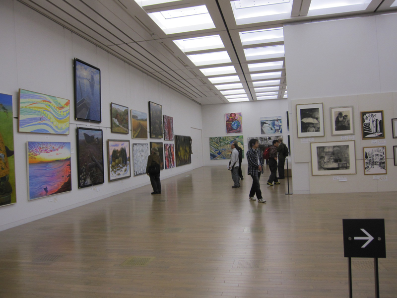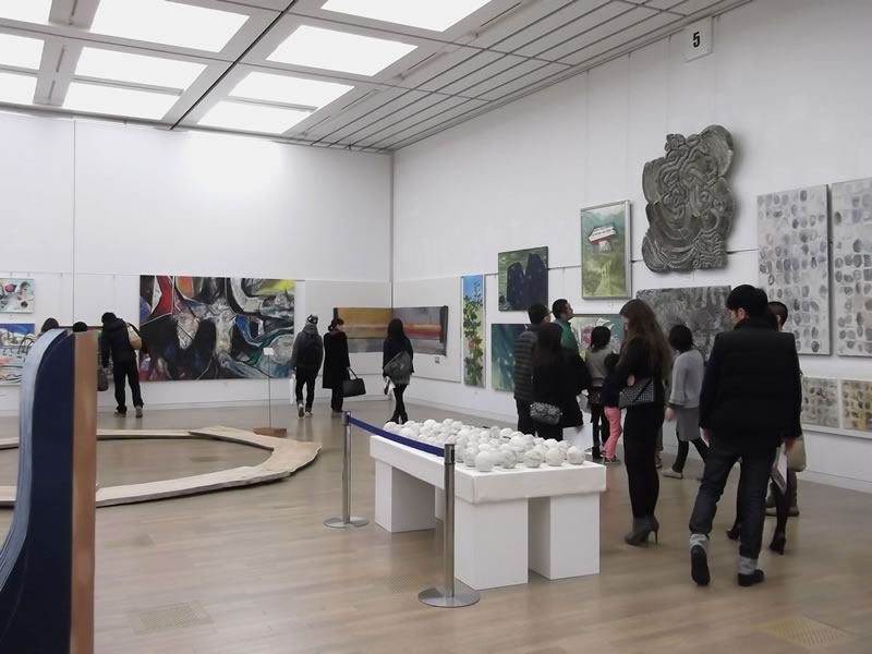 広く明るい国立新美術館は多様な作品群のステージです。毎年、1万数千人の鑑賞者が集います