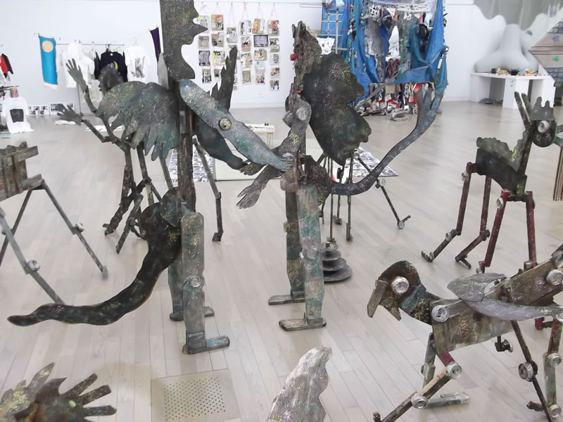 各国キューレションサポートが7人います。それぞれ海外の暮らしが長い方たち・作家でもあります。展示にはキューレションサポートの方も作品展示をし、簡単なパンフレットで、各国の作家の紹介と、サポートの方々の経歴とメッセージをいただきます。
