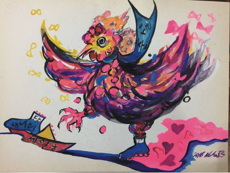 辛島菜緒(ペン画)/meimi(半抽象画)