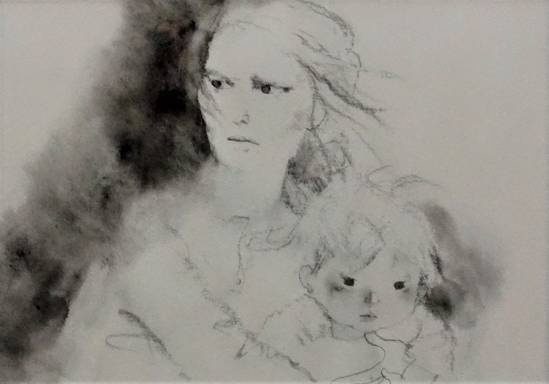 いわさきちひろ「焔のなかの母と子」 『戦火のなかの子どもたち』より ピエゾグラフ