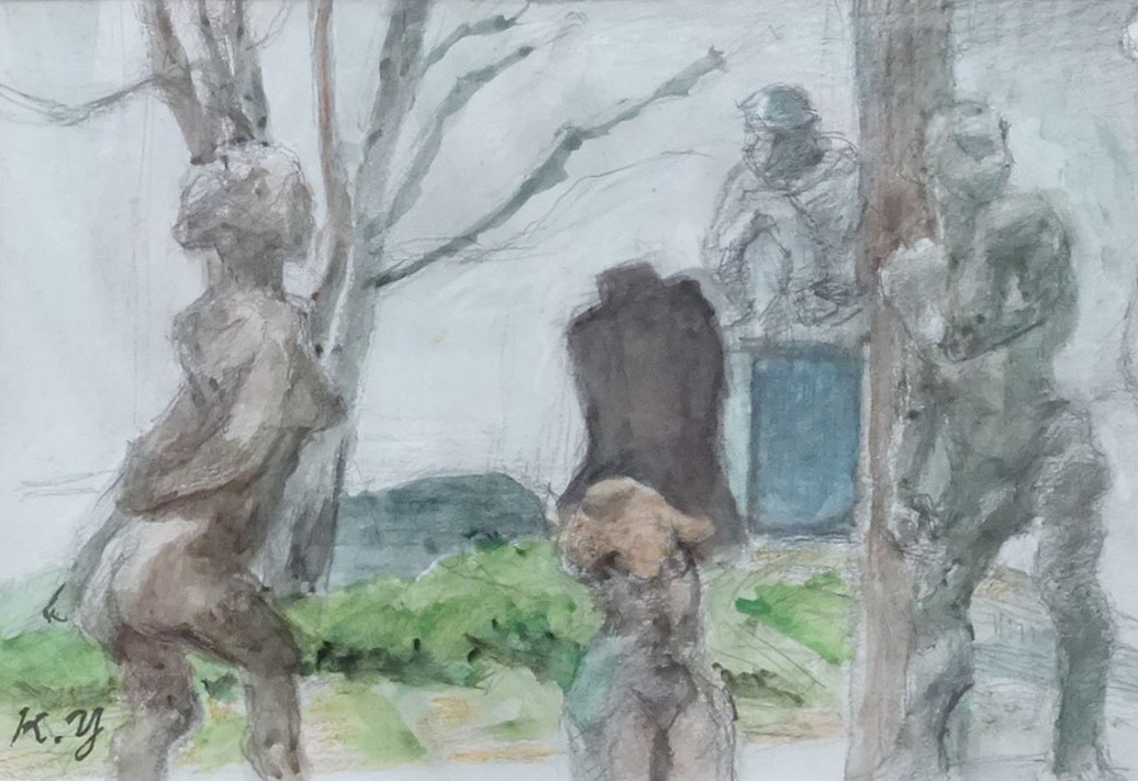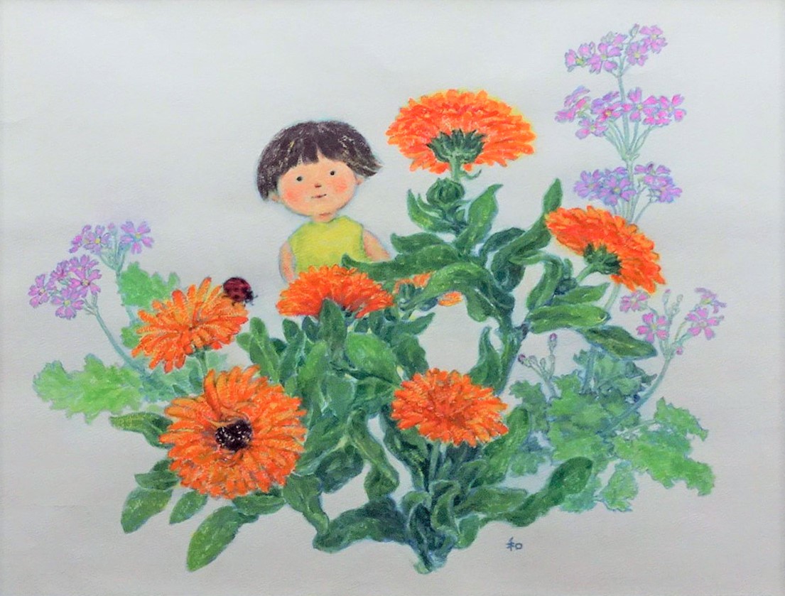 いわさきちひろ「シクラメンの花の中の子どもたち」 『戦火のなかの子どもたち』より ピエゾグラフ