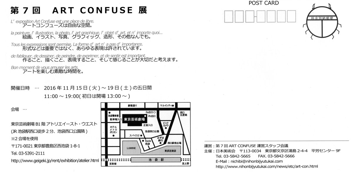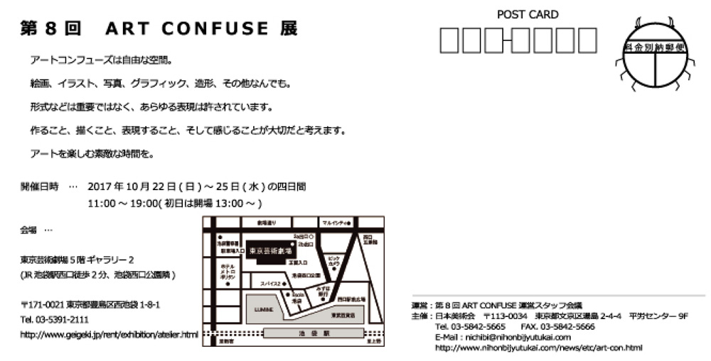 日本美術会 「ART CONFUSE」宛 郵送又はFAX 又はE-Mail (nichibi@nihonbijyutukai.com) までお送りください。