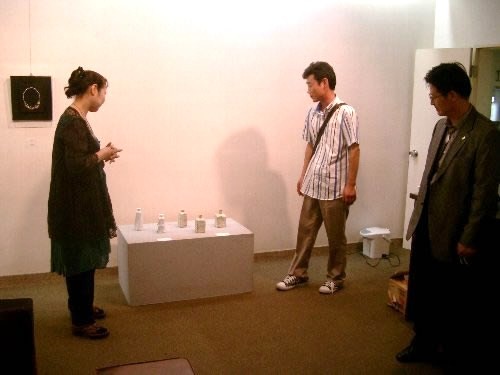 公州からの作品は平面より工芸作品が多かったが、可動壁をなくし、全面が見通せるように展示したので、すっきりと見やすかったと思う。来客数は猛暑の中駅から歩かなければならない美術館なので多くはなかったが、来館された方は好意的に見てくれて嬉しかった。韓国の方からも、奈良さんの踊りからオープニングセレモニーを始めたことや、出品作品も良かったとの意見を聞いている。