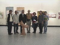 公州との美術交流は交互に6回目を迎えた。公州では「百済文化祭」時に実施され、20名以上の初韓国 体験と人的交流が行われ、日本では今まで京都で二回実施された。これにも韓国から20名近い美術家が日本に来て、日本の文化について理解を深め、人的な交 流もされた。作品展も1回目は京都市美術館別館で、二回目は国際交流会館と近くの画廊の二会場で行われた。今回は初の東京、日本橋「好文画廊」で9月16 日~21日に開催。公州から8名の美術家が訪日、16日~19日まで、3泊3日で、ツアーを組んで、車をチャーターし、独自に東京の美術館などめぐったわ けで、日本美術会としての東京案内のサポートがなくなり、助かった面があったが、人的な交流が少なくなったという事では残念な面もあった。しかし、これも 財政的な問題から、今回から基本的には自ら経費を出しての訪日ということで、合理的な解決をしたという面もあったろうから、それも1つのやり方だろうと思 う。16日のオープニングパーティーとその後の歓迎夕食会:(韓国から8名、日本側から25名の参加)17日は今後の交流について会議(5名で)。18日 はお別れ夕食会(韓国から7名、日本側から8名の参加)。作品を見て、お互いを知り、夕食会などで親しくなる、理解を深めるというパターンだったが、お土 産の交換とか、(花瓶と小皿5つもらう)こちらからは伝統的なデザインのハンカチをプレゼントした。作品の送付では航空速達を使ったが、受取るときにトラ ブルがあったが、税関の電話を受けた人がたまたま職美のメンバーの人で、スムーズに運んだという事があったので、そのことも多くの協力の賜物と云う点で、 書いておきたい。(K)