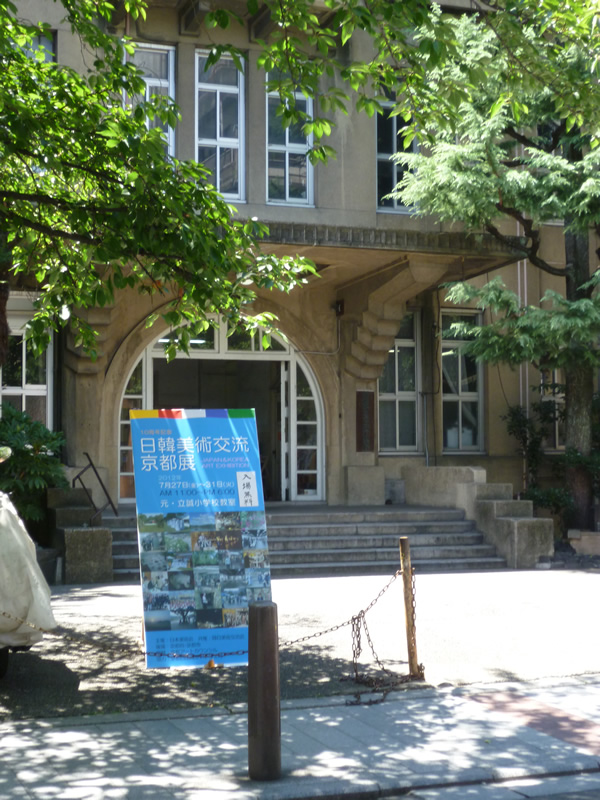 「日韓美術交流展」2006京都が17日に終了した。10名の韓国からの美術家(出品者)も無事帰国した。「京都市国際交流会 館展示室」と「アートスペース東山」の二会場を使っての展示、その作品セミナー(16日・参加約二十名)。オープニングパーティー(13日)はおよそ60 数名が参加して、催しなども盛会に開かれた。そして、京都観光は、京都実行委員会によるコーディネイトされた二条城・金閣寺・龍安寺・広隆寺など回った。 色々なお店(食事・ショッピング) など、相互理解の一端を担ったのではないか?と思う。また今回は宿舎の「日韓文化交流センター」での宿泊と朝食などの交流、「詩人尹東柱を偲ぶ京都の会」 の後半の通訳のサポートと韓国の美術による自主的な募金(記念碑建立の)などの交流、15日の京都アートカウンシルの町家を再生した画廊「小米庵」での パーティー招待。いろいろな文化交流の広がりがあった2回目の交流展だったと思う。同時期に「日本美術会京滋会員展」が別会場であって、地元には大変忙し い日々となったが、そこを韓国の方々を案内した時、U氏の奥様から皆さんへのお土産が配られたりして、暖かい心を感じたものだった。そういう意味でも広が りがあったとおもうが、なかでも 偶然、京都在住・台湾出身の水墨画家王氏が展示の中に二十二年前の恩師を見付け、感動的な再会を果たした場面も出現したりして、東アジアの交流へと展開し ていったのは、偶然とはいえ、今後のあるべき姿を垣間見た瞬間だった。17日晴れ渡った空の下、光運寺前にてバスをお見送りしたが、暖かい友情の気持ちが 湧き上がってきた事を報告しておこう。(文責・木村勝明)