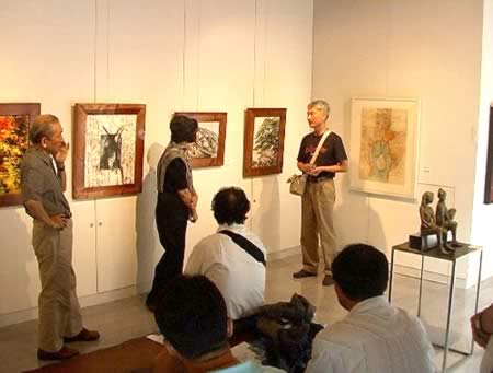 韓国から公州美術家7名が8月2日から5日まで来日された。3日は六本木周辺見学の後来館、展覧会のオープニングでは各作家が作品への想いを熱く語ってくれた。