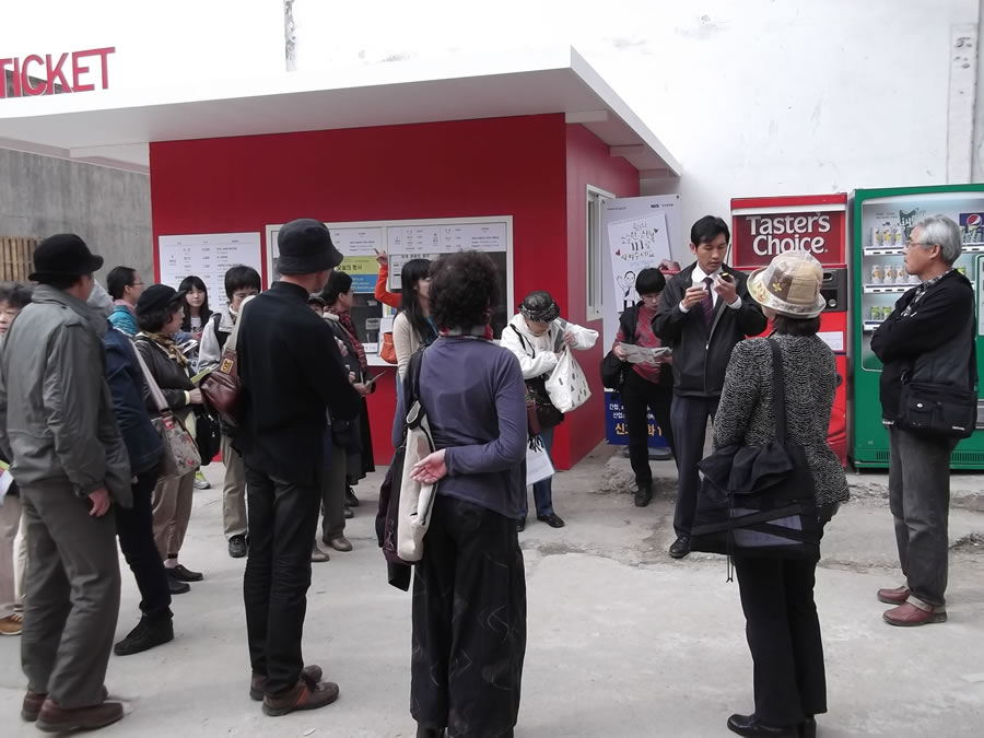 10月9日;清州国際工芸ビエンナーレ見学。清州は公州より人口も多く、たばこ工場の跡地を使った大掛かりな公募・企画・展覧会で、工芸と言っても現代アートに近い作品が多く、興味深く、面白かった。案内してくれたユンさんは、去年日本美術会の事務所を訪ねて来てくれた人で、韓国伝統の御茶席を準備してくれたりと歓迎してくれ、テレビのインタビューも受けたりした。