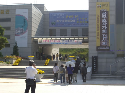 10 日朝は朝食が済むと近くの熊の廟に詣でた、二日連続で散歩した。静かでとても美しい場所、 この熊の廟が公州の伝説の物語の場所である。行かれてない方は残念だった。さて、この日短時間だがYATOO(野投)の美術山(ミスルサン)?を訪問し て、時間が無いので直ぐに国立公州博物館に行き、85歳の日本語が達者な方のレクチャーを受ける。会長のYoo,Soon-Sikさんの先輩らしい。博物 館の展示も一緒に見て、その後昼食、公山城前のトルソッパ(豆ご飯)を頂いて、根岸さんの要望もあった東学農民の乱・終焉の地記念塔に立ち寄る。ここ公州 は百済国の危機の時代の都であったが、同時に近代に朝鮮で起きた大規模な革命戦争の終焉の場所でもあった。
