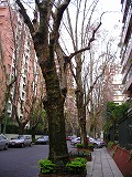 今、ブエノスアイレスの街路樹は木の葉がほとんど舞落ち、裸でどんよりした冬空に聳え立っています。私が住んでいるアパートの 前の街路樹はポプラの樹で空に向かって長い枝を伸ばしています。こちらの樹は手入れのために切られることはあまり無く伸び放題の感があります。日本の友人 が来て一番高い樹は11階より高いよと吃驚していました。ごつごつした幹にこぶをいっぱいつけて存在を主張し、生きてるぞーという感じの木もあります。曲 がりくねったり、目のようなこぶがある木を見ると、ついつい振り返って散歩をしていると、犬の糞を踏んでしまい後悔することになります。自分の飼い犬の糞 の始末ぐらいきちんとしろよと叫びたくなります。住宅街は犬の糞、下町は紙屑・駅の線路は切符散乱、古きよき時代に自分で掃除をしなかった人々の名残なの でしょうか。教育されていない人が多いのでしょうか。