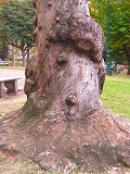 店の前の街路樹は災難です。朝道を掃いたほうきの先を、しゃっしゃっとこすりつけて幹で汚れを落とす人をよく見か けます。店が開くと店の防犯のための鉄格子が幹に鎖で括り付けられ、少しのこぶの隙間には空き壜、ゴミが突っ込まれています。こちらの木は日本の木の植物 的な感じではなく、動物的に見え、夜になったら歩き出すのではないかと想像したりします。