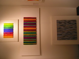 5月24日に友人と二人で「EXIPO ARTE BA 2005」を見に行きました。BAはブエノス・アイレス の略字です。このエキスポはブエノスアイレスにある80軒位のギャラリーが一堂に会し、各ブースを借りて自分のギャラリーで扱っている作家の作品を紹介 し、即売もしていました。20ドルの小さな作品から3万ドルの作品もあります。大木をくりぬいて作った彫刻、針金にカラフルな布を巻き付けて作ったオブ ジェ、木を細く削って色を塗り貼りあわせた作品、油彩、水彩、木の板を彫って彩色した作品と多種に並んでいました。