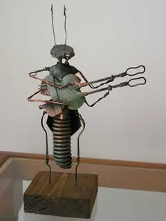 小鳥が歌い、木々の芽吹きも一斉に始まり、青い空を見ながら私も♪なごり~雪も~♪と鼻歌を歌いながらお店を冷 やかし、針金で作った昆虫(4本の足で楽器を弾いている、約15センチ位)と、手作りの小さなこまを6個買って帰りました。春は良いですね。