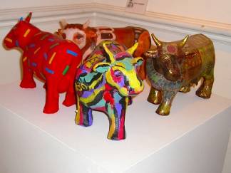 この作品は紙を貼って彩色した立体です。牛の牧場が沢山ある国なので作品に牛が題材になっていることも多いで す。アサード(フィエスタで必ず食べる牛の炭焼き)の素材を買いに行こうと言われて一緒に行ったら、牧場に連れて行かれ、生きた子牛のどれにするかと質問 されびっくりした話を日本人から聞きました。感覚の違い、文化の違いを突きつけられるとき島国に育った私たちはおたおたしてしまうことも多いです。