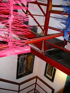 美術館には下の写真のようにワインが用意され、作品を見ながら集まった人たちが歓談したり美術館の人の説明を聞い たり、美術館にあるクラスについて質問したりしていました。私は住んでいる地区にある美術館を回りました。写真は最初に訪れた紙の美術館です。この美術館 では手造りの紙、リトグラフの作品が見られます。使っている素材は麻、綿、古紙の再生、布からの再生、が主で和紙の素材、楮、三椏、雁皮などは使われてい ません。乾燥の方法は参考になるかなと思いました。館員が素材を使ってどのように作成するか実演説明をしていたのは、紙、版画のクラスの宣伝でもあるよう です。
